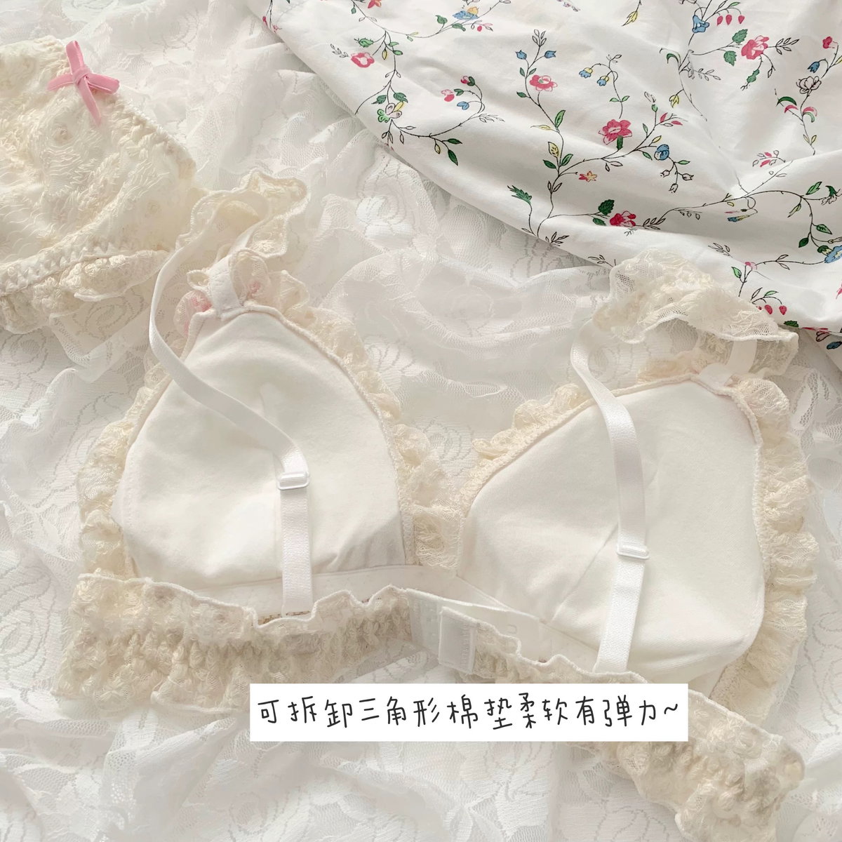 Conjunto | bra+panty de encaje con lazo