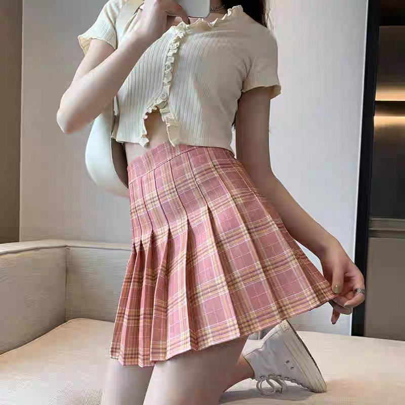 Falda tableada cuadril rosa y marron
