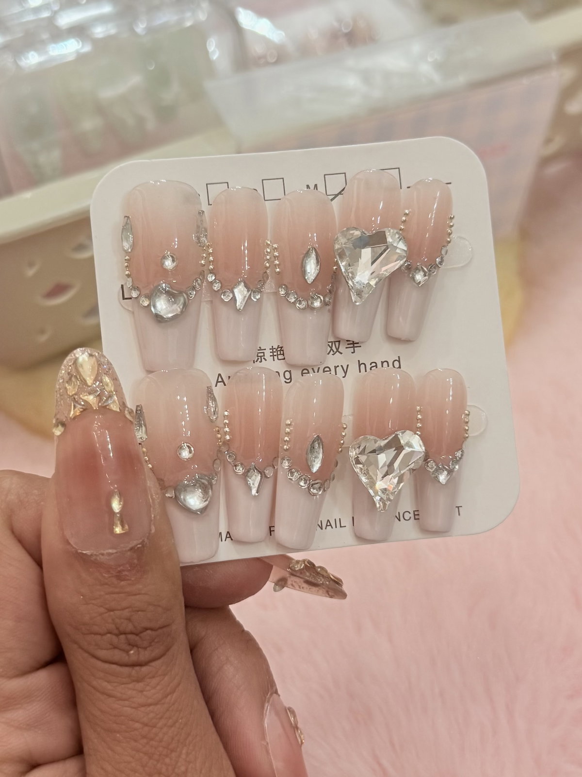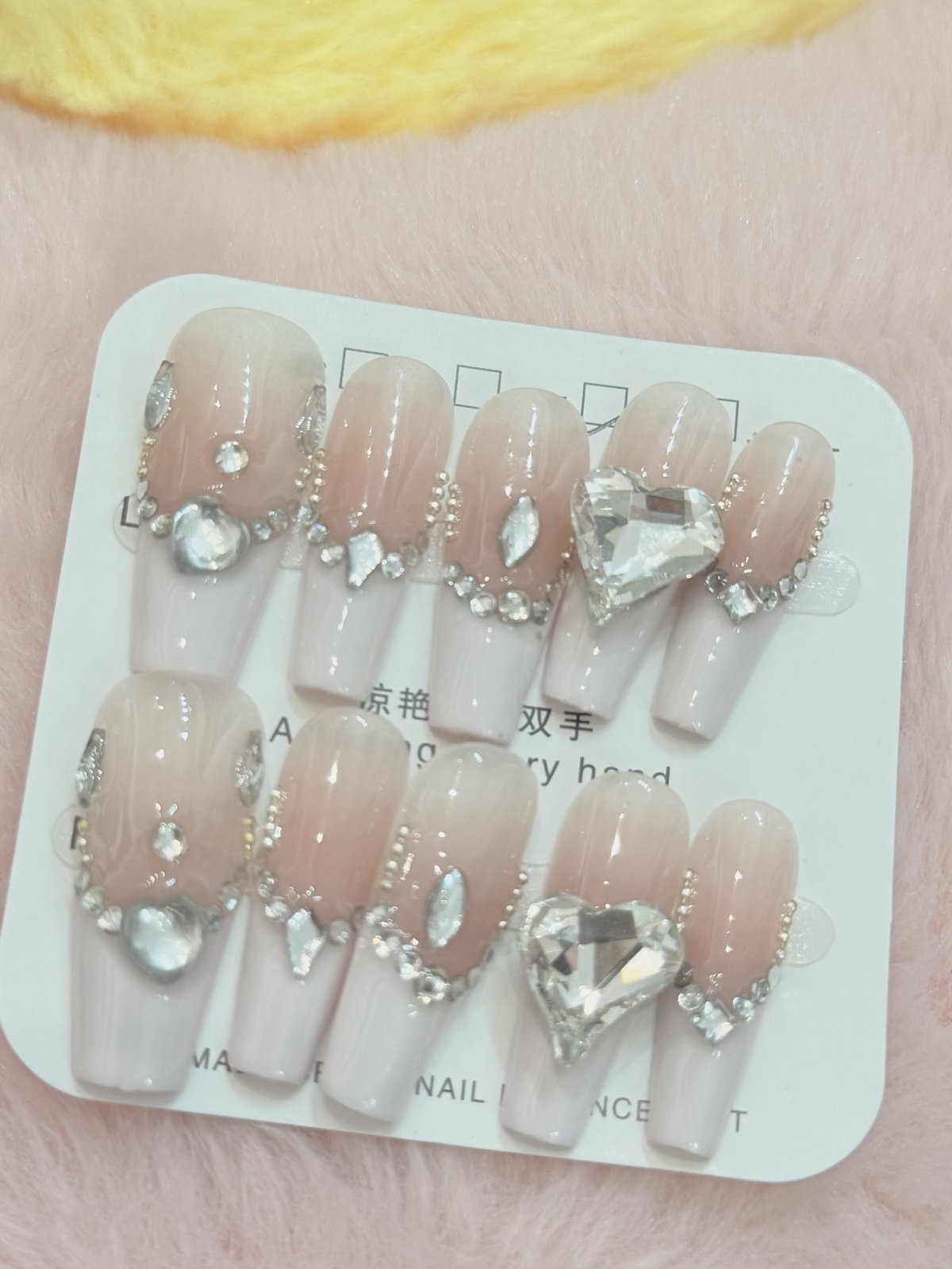 Uñas press on corazón de pedrería